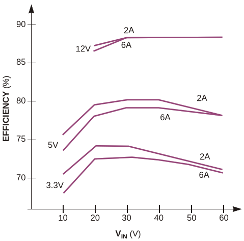 Figure 2. The circuit of Figure 1 delivers good efficiency for 15 to 60 V inputs