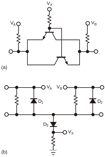 An open-collector or open-drain circuit (a) typically interfaces between two systems that operate at two arbitrary voltages. A diode-based circuit (b) can extract the lower operating voltage