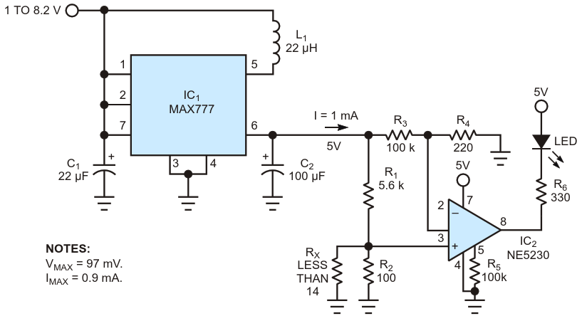 This short-circuit detector uses little power, and provides low currents and voltages to avoid damage to the device under test