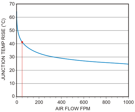 TO-92 junction temperature rise versus air speed