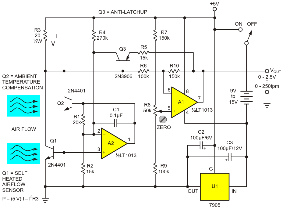 Figure 2. Linearized portable Darlington anemometer schematic