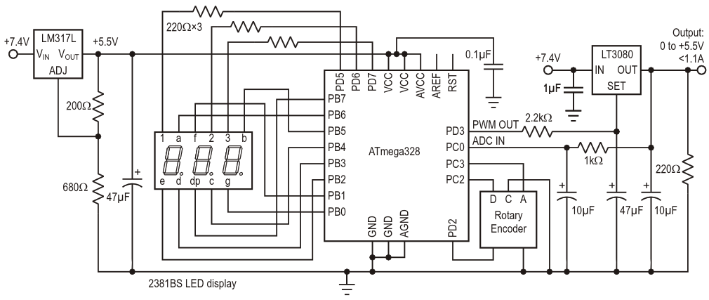 Circuit of the Proto Power Supply, based on an ATmega328