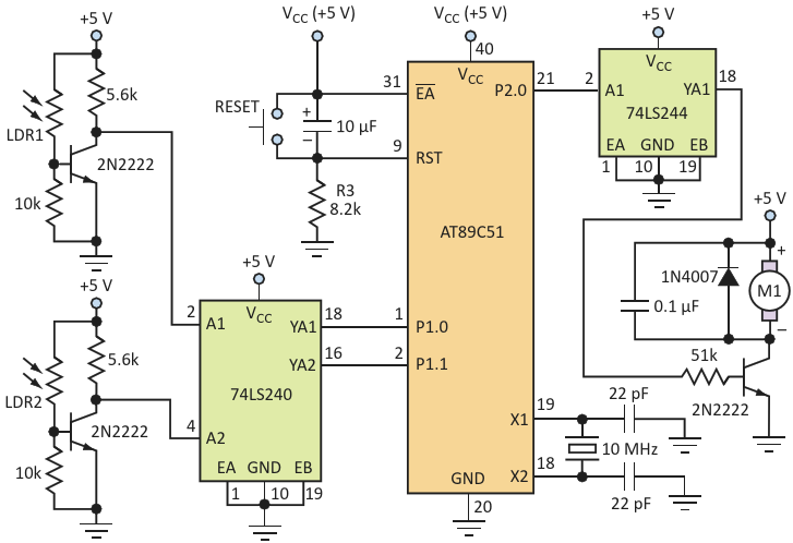 Set DC-Motor Speed with Light-Controlled Microcontroller Circuit