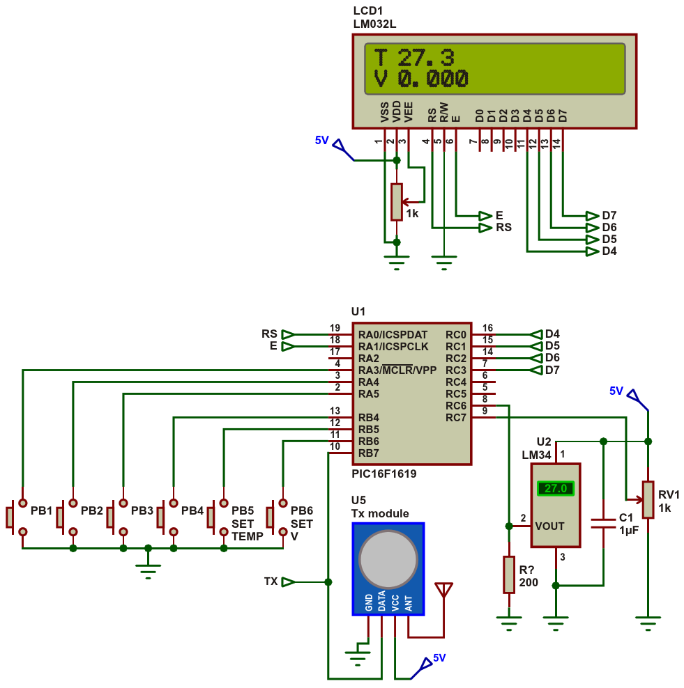 Shown is the circuit for the relay transmitter based on the microcontroller PIC16F1619