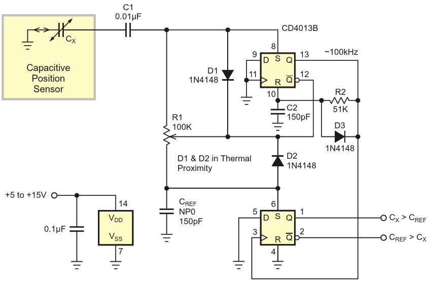 CMOS flip-flop used "off label" implements precision capacitance sensor