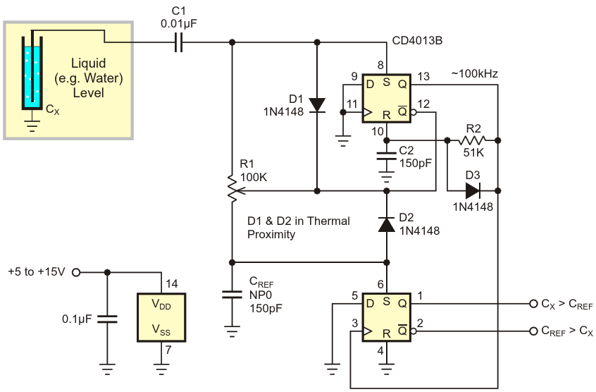 Liquid level sensor using the CD4013B