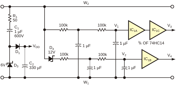 This control circuit uses dc pulses from the circuit in Figure 1 to drive triacs in the circuit in Figure 3