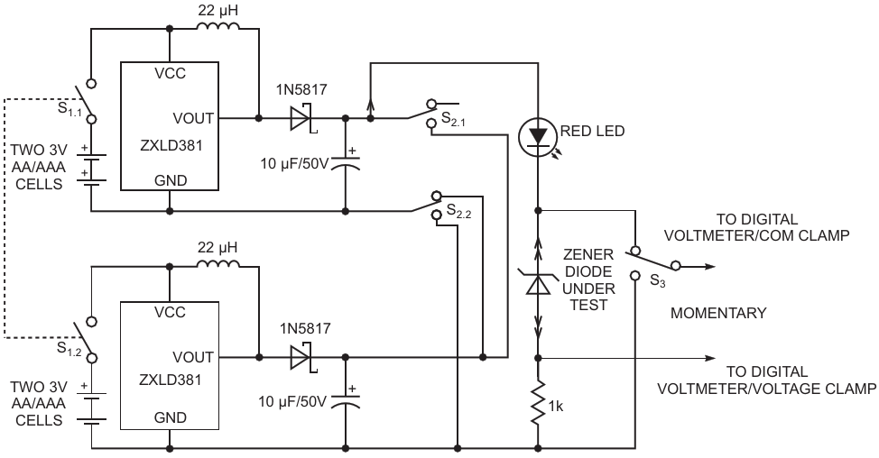 Two LED drivers operating in series or parallel let you boost zener voltage or current