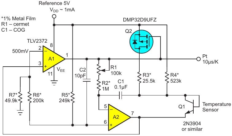 Transistor ∆VBE-based oscillator measures absolute temperature
