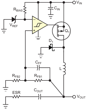 Figure 1. This hysteretic regulator suffers from unpredictability of the switching frequency because of C