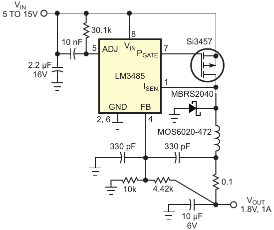 Figure 2. An added series resistor makes this circuit's switching frequency more predictable