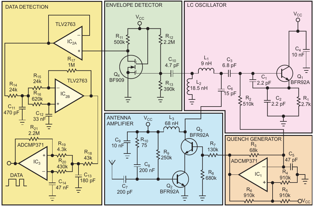 The super-regenerative receiver features relatively few components
