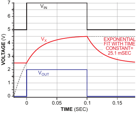 Figure 1. This RC circuit models a single dominant time-constant transducer, producing a rounded, intermediate voltage, V