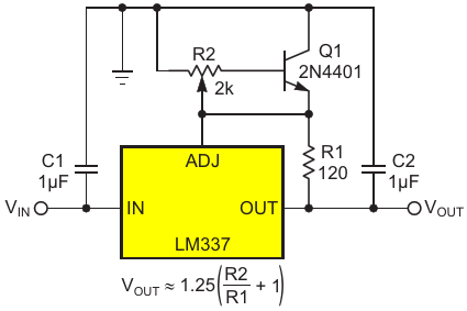 Figure 1. The typical regulator datasheet adjustment circuit