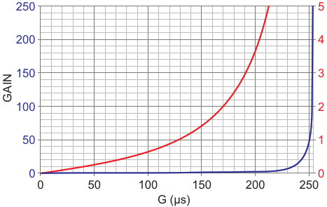 The linear gain plot (Red = 0 to 5 and Blue = 0 to 255)