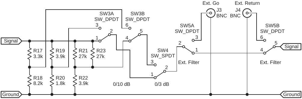 Diagram of 3/10/13 dB attenuators and external filter connectors