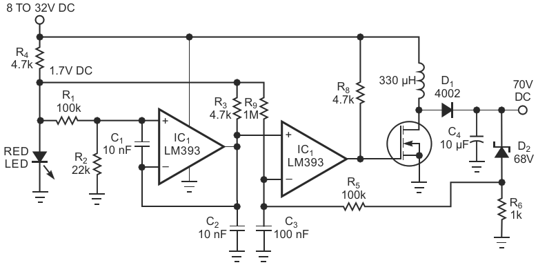 Figure 2. A 70 V-dc upconverter employs the ramp generator