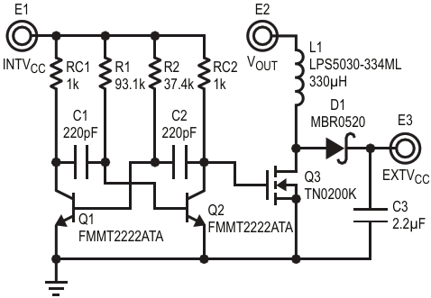 Figure 3. Boost controlled by astable multivibrator is used for V