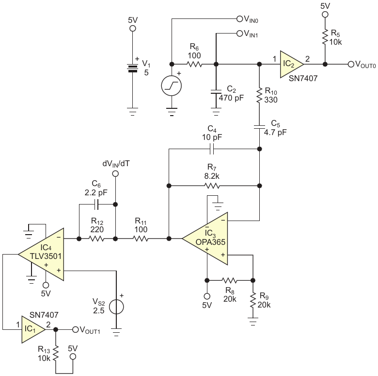 Figure 3. Differentiator and comparator used for pulse reconstruction