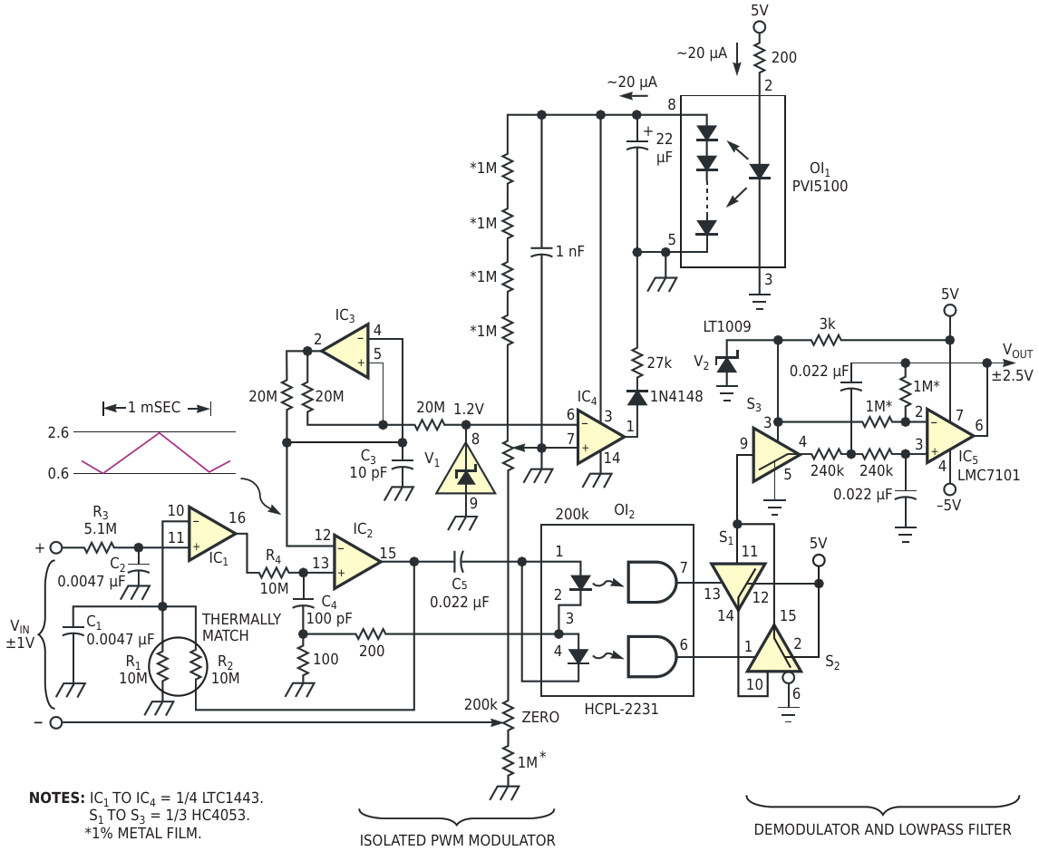 A virtual perpetual-motion machine (when there's light), this self-powered amplifier provides complete galvanic isolation for both power and signal