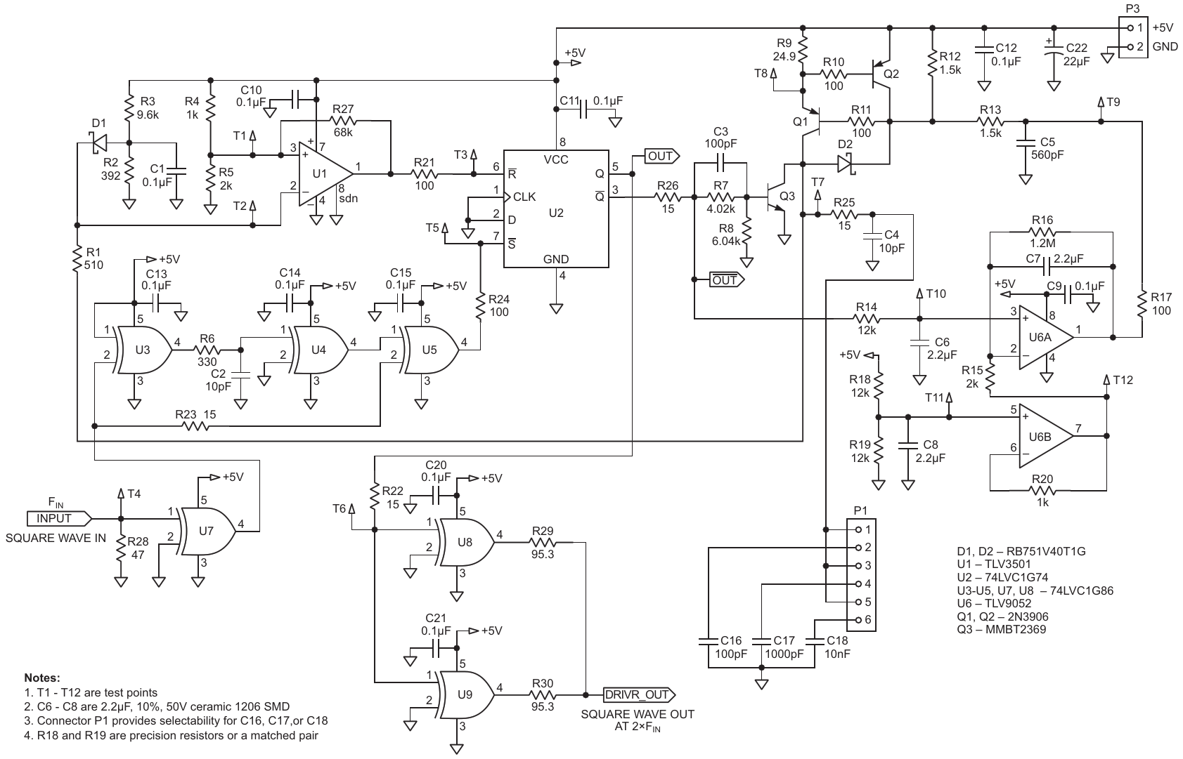 Circuit for an ultra-fast one-shot is forced by negative feedback to produce a 50% duty cycle square wave output