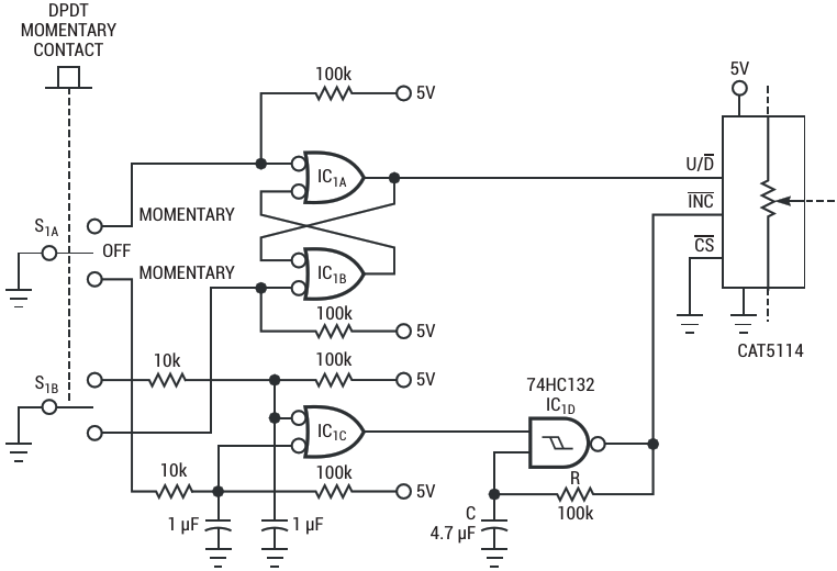 Single switch controls digital potentiometer