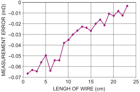 Figure 3. The measurement error of the system, where the noise in the curve is due to the human error in placing the measurement leads, and the slope of the curve is due to a slight system gain error