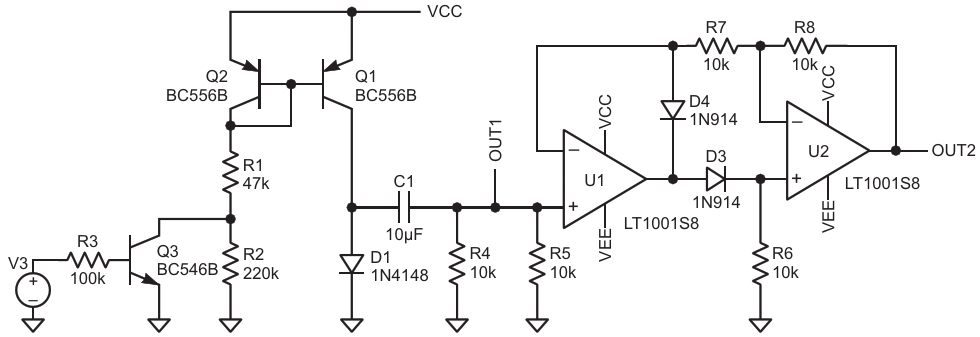 Figure 3:. Functional circuit with RMS output directly proportional to temperature