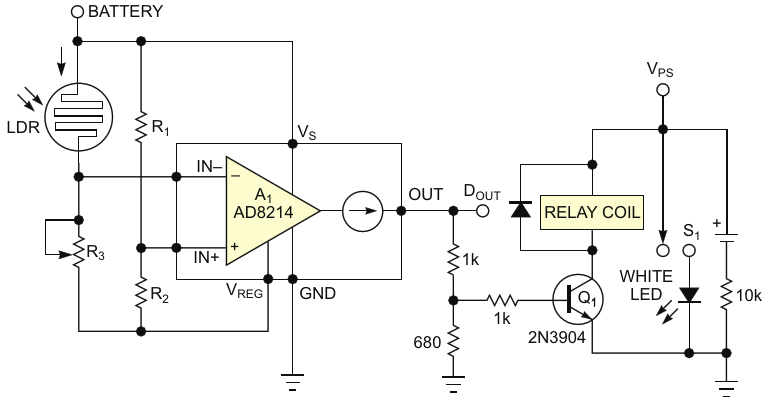 Figure 2. This night-light circuit turns on as the illumination on the photoresistor dims