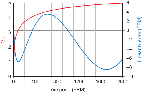 Figure 4. Airspeed response linearity of Figure 3's anti-log VFC is better but still un-terrific