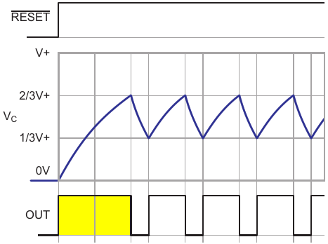 Figure 1. Typical gated (via RESET pin) 555 astable multivibrator