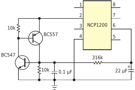 Figure 1. A controller IC implements a low parts-count offline power supply