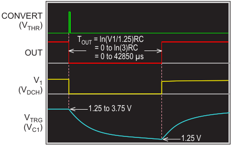 Figure 3. ADC cycle begins with a CONVERT THR pulse that generates an OUT pulse of duration T