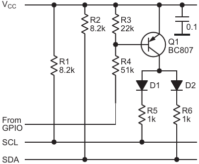 Figure 2. Alternative adaptable pullup solution that uses an analog switch to disconnect the "fast" part of the bus