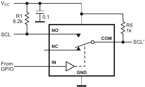 Figure 2. Alternative adaptable pullup solution that uses an analog switch to disconnect the "fast" part of the bus