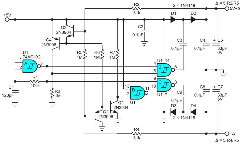 Direct charge pump control yields efficient generation and regulation of bipolar beyond-the-rails voltages