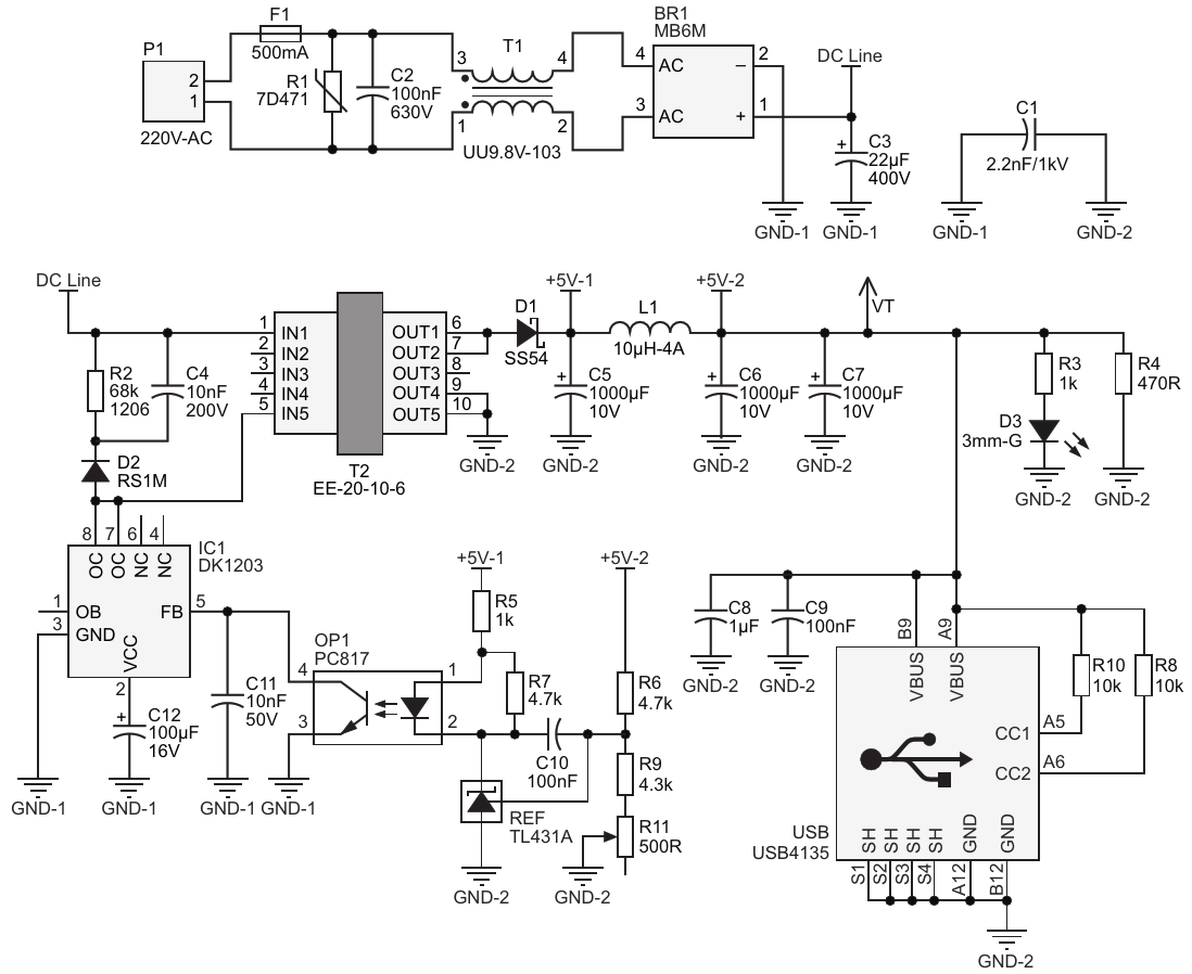 Schematic diagram of the flyback switching power supply