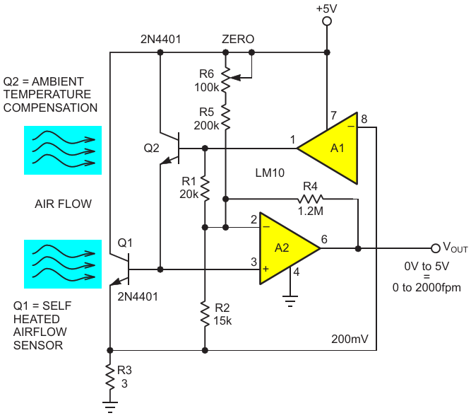 Figure 1. Typical self-heated transistor thermal airflow sensor