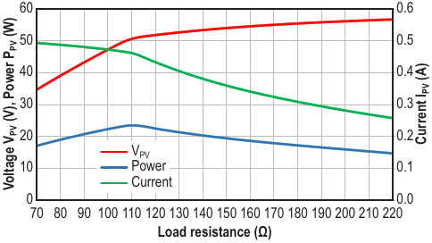The chart shows the characterization of the PV array under constant sunlight intensity