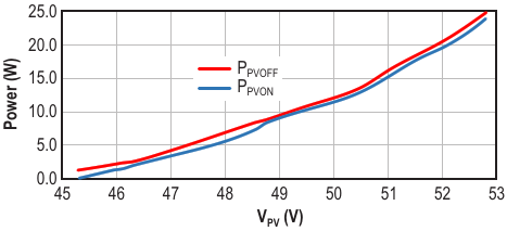 Figure 6. This PV power plot shows when the converter is OFF and when the converter is turned back ON
