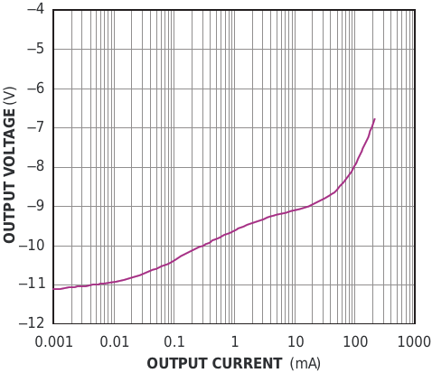 Figure 2. At light loads, the circuit in Figure 1 delivers more than -10 V; at higher currents, the magnitude of the negative output voltage exceeds its positive input voltage of 5 V
