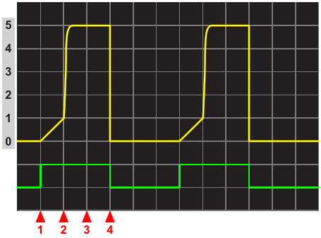 Figure 3. Active pullup waveforms and 4-step sequence labeled within the image