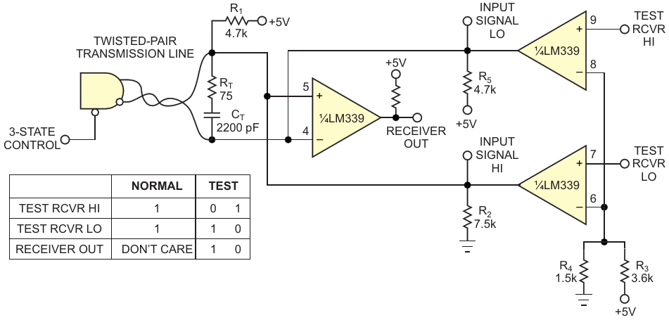 Selecting the correct device lets you configure a differential line receiver with programmable self-test capability
