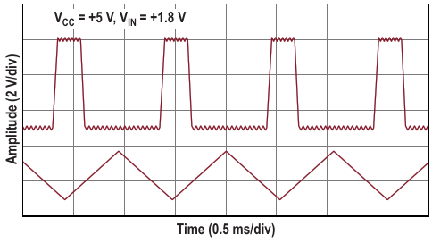 Figure 2. These waveforms show the circuit's PWM and triangular-wave outputs