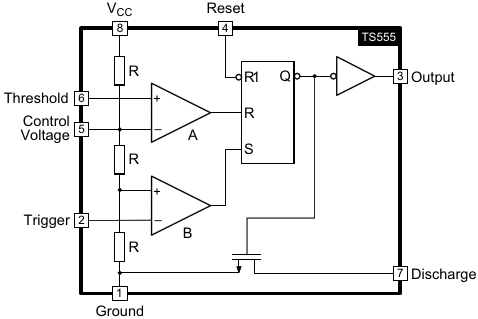 Block diagram of the TS555 lower power single CMOS timer