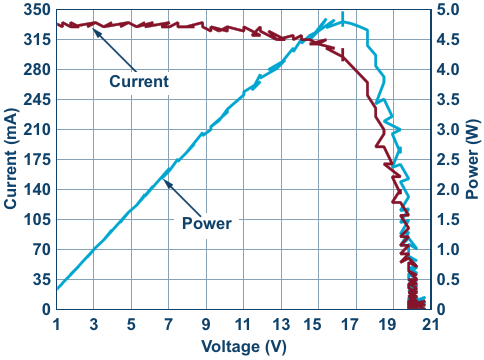 Figure 3. I-V and power-V curves taken with capacitive sweep and LTC2058 circuit