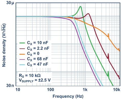 Figure 6. Output noise density for various supply voltages