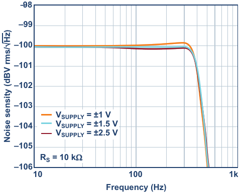 Output noise density for various supply voltages