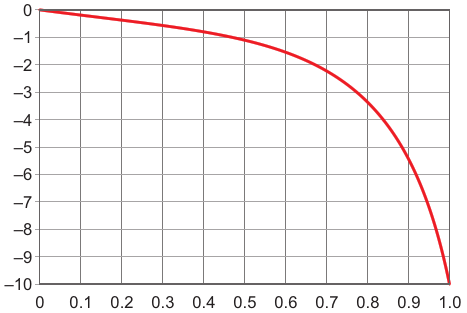 (0 V to -10 V) versus the PWM duty factor (0 to 1). [V