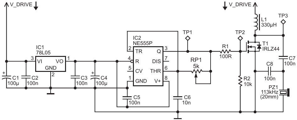 Figure 2. The circuit diagram of the final part of the project - the transducer driver